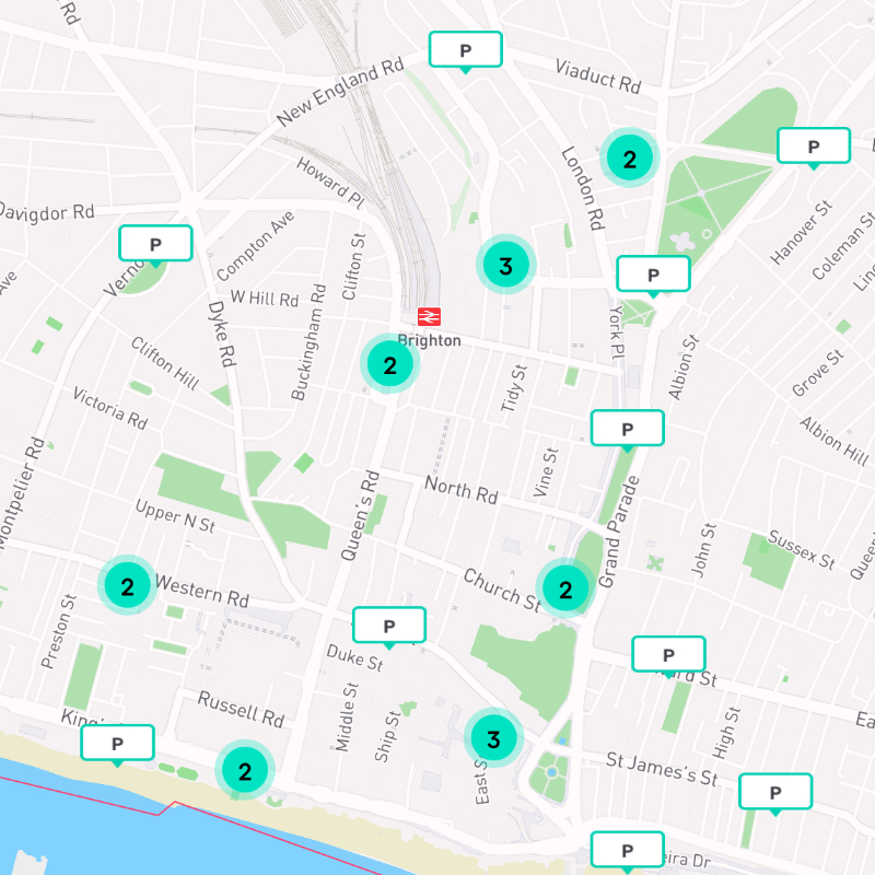 National Cycle Network (NCN) route 20 is accessible at the eastern end of Church Street which runs northwards through to ‘The Level’ where route 20 branches off to the north-west and runs through Preston Park, Withdean and Patcham. Taking NCN route 20 south from Church Street takes you to the seafront where it connects with NCN route 2 which runs along the coast. Additionally, at ‘the Level’ a regional cycle route begins and heads to the north-east into Lewes.